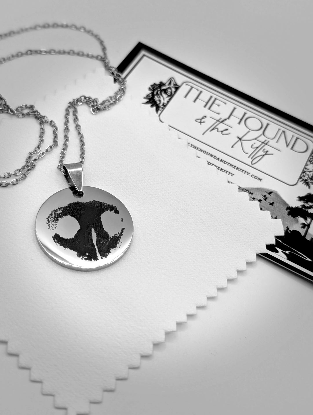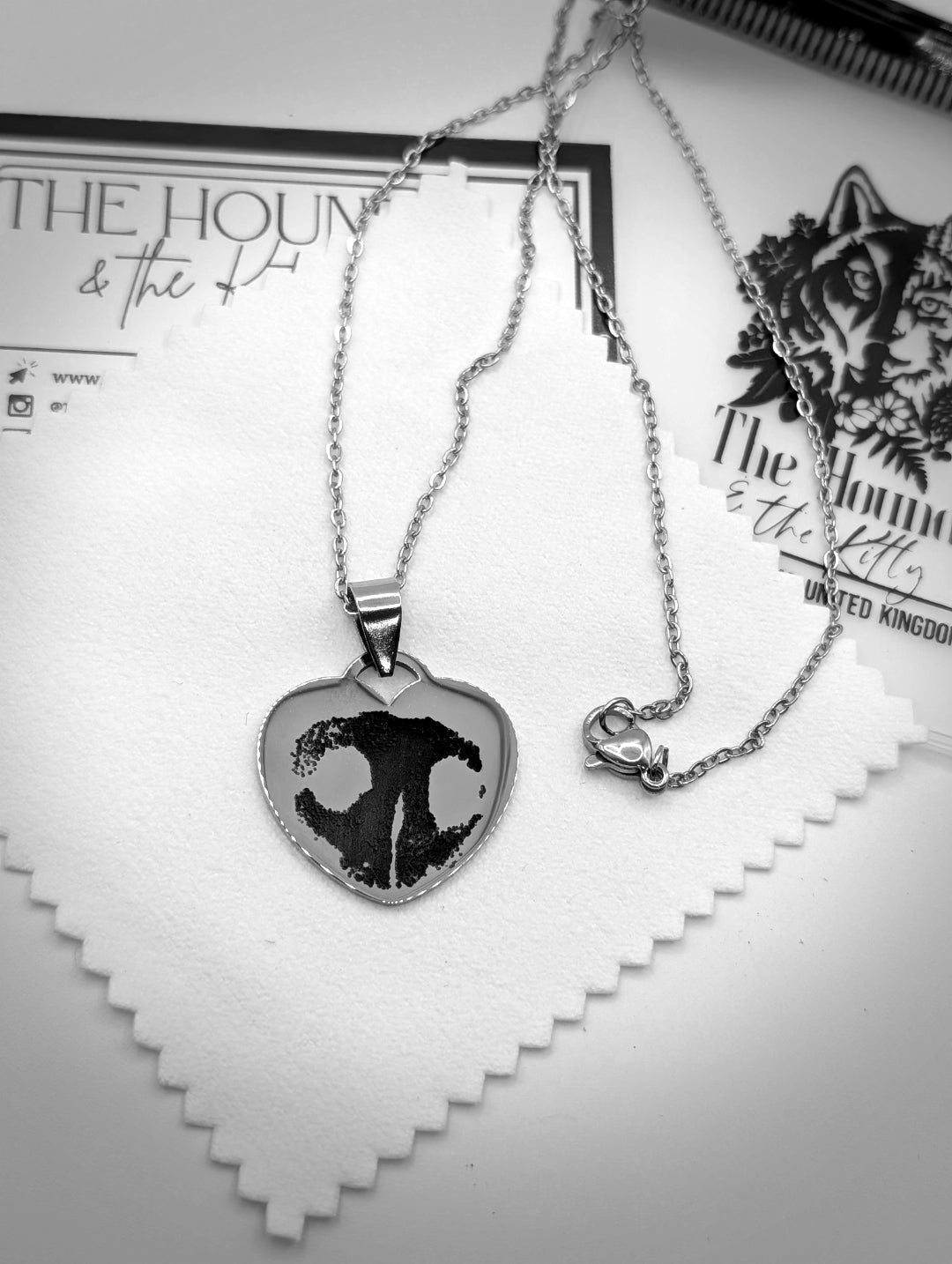 - 316L Stainless Steel 25mm round or heart pendant with 45cm necklace (Custom size/shape on request info@thehoundandthekitty.com)
