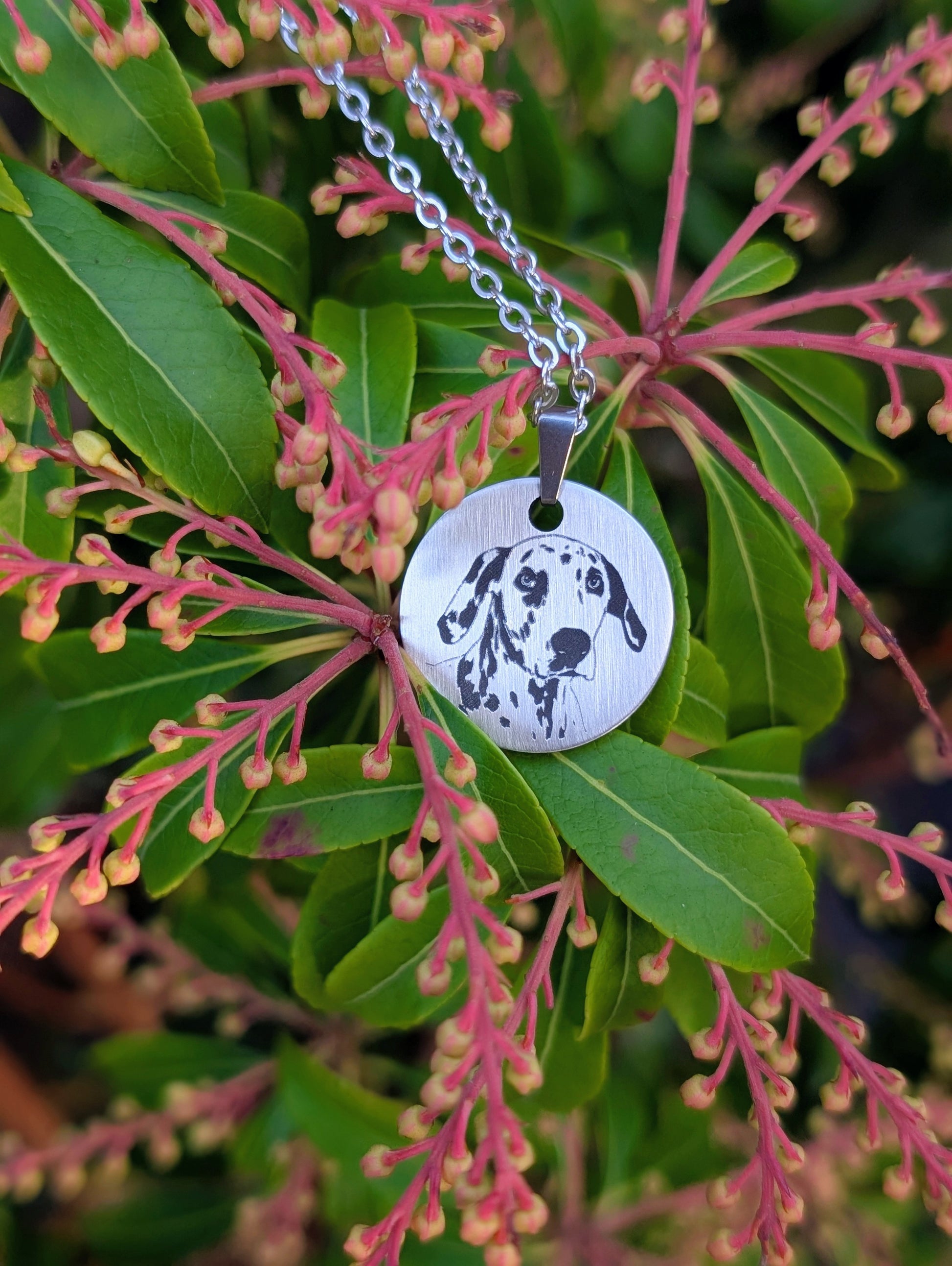 - 316L Brushed Stainless Steel 25mm round pendant with 45cm necklace (Custom size/shape on request info@thehoundandthekitty.com)